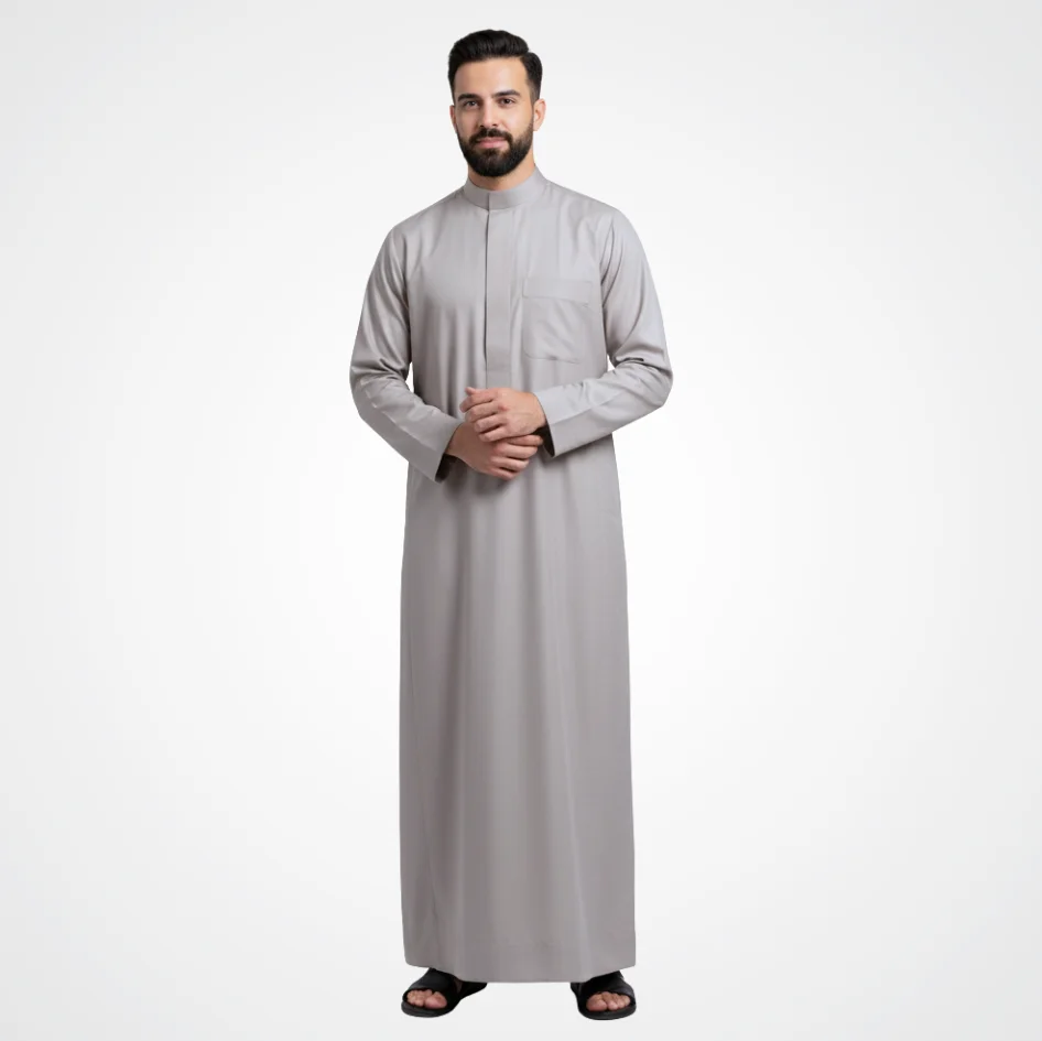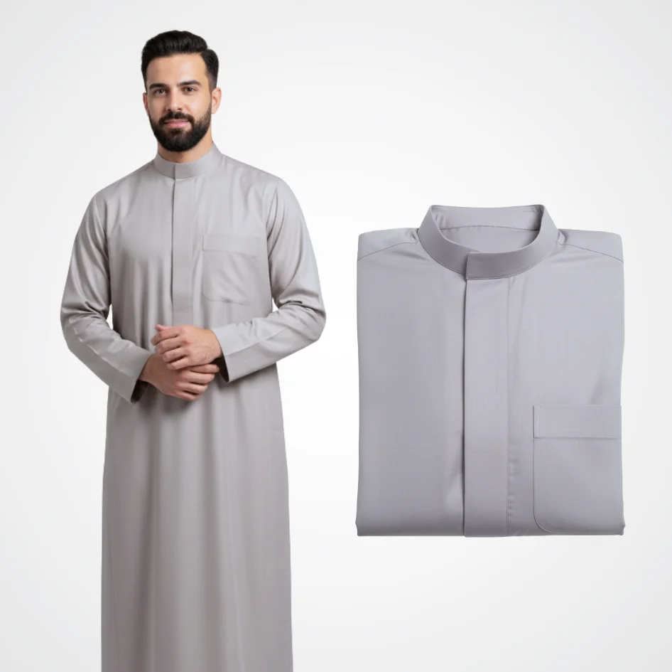 Saudi Thobe for Mens Light Gray Arabic Traditional Suite –